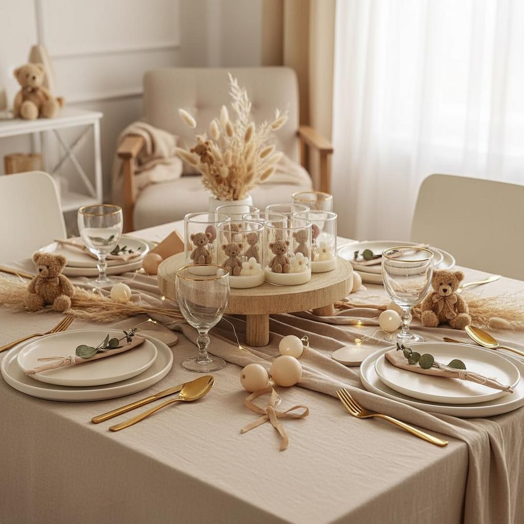 Custom Set of 5 Baby Shower Candles: Handmade Soy Wax Teddy Bear Favors